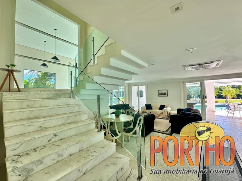 A residência se destaca por sua garagem náutica e píer privativo, permitindo acesso direto ao mar para embarcações de diversos portes, ideal para os amantes da navegação. Além disso, o condomínio oferece segurança 24 horas, garantindo tranquilidade e privacidade.
